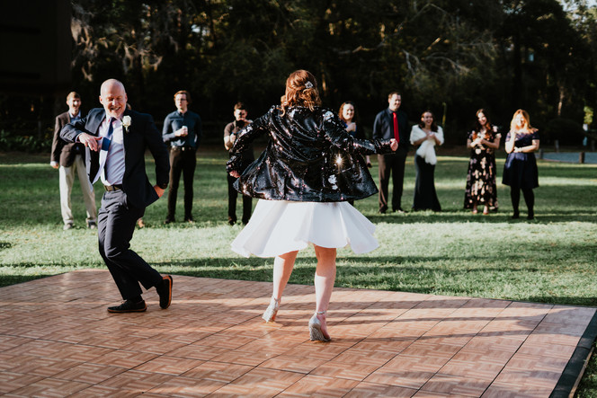 Post ceremony we wrapped the portraits and dinner was served (Mission Barbecue - absolutely delightful) and the dancing portion of the evening began. An admirable attempt at a bachata from the bride and groom kept the mood light for the transition into the coolest father daughter dances ever. I won't even spoil the final moves, you'll just have to scroll ahead to see the end of the dance off.